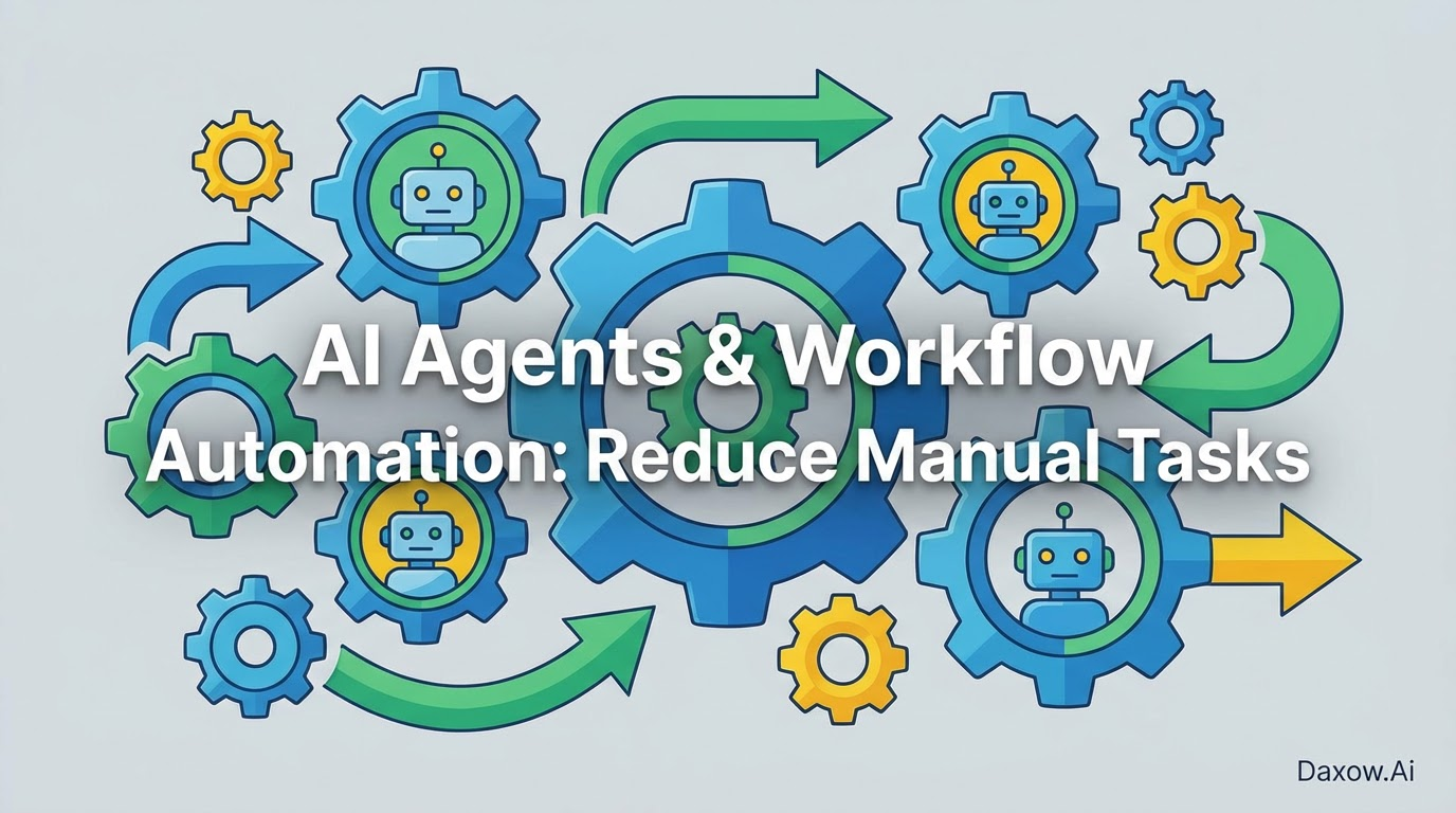How AI agents and workflow automation cut manual tasks, lower costs, and boost productivity. Includes roadmap, use cases, ROI tips, and Daxow.ai services.