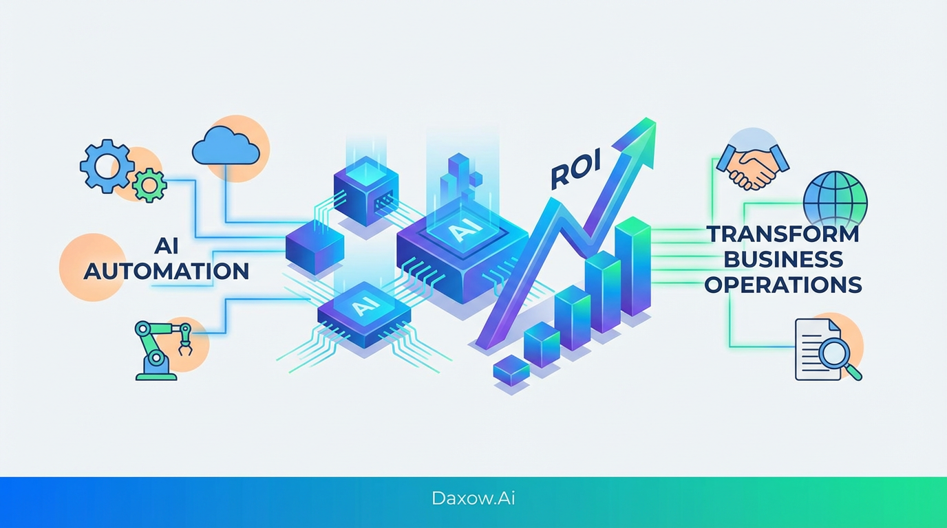 Practical guide to AI automation for business operations—steps, industry use cases, KPIs, and how Daxow.ai builds custom AI agents to boost productivity and ROI.