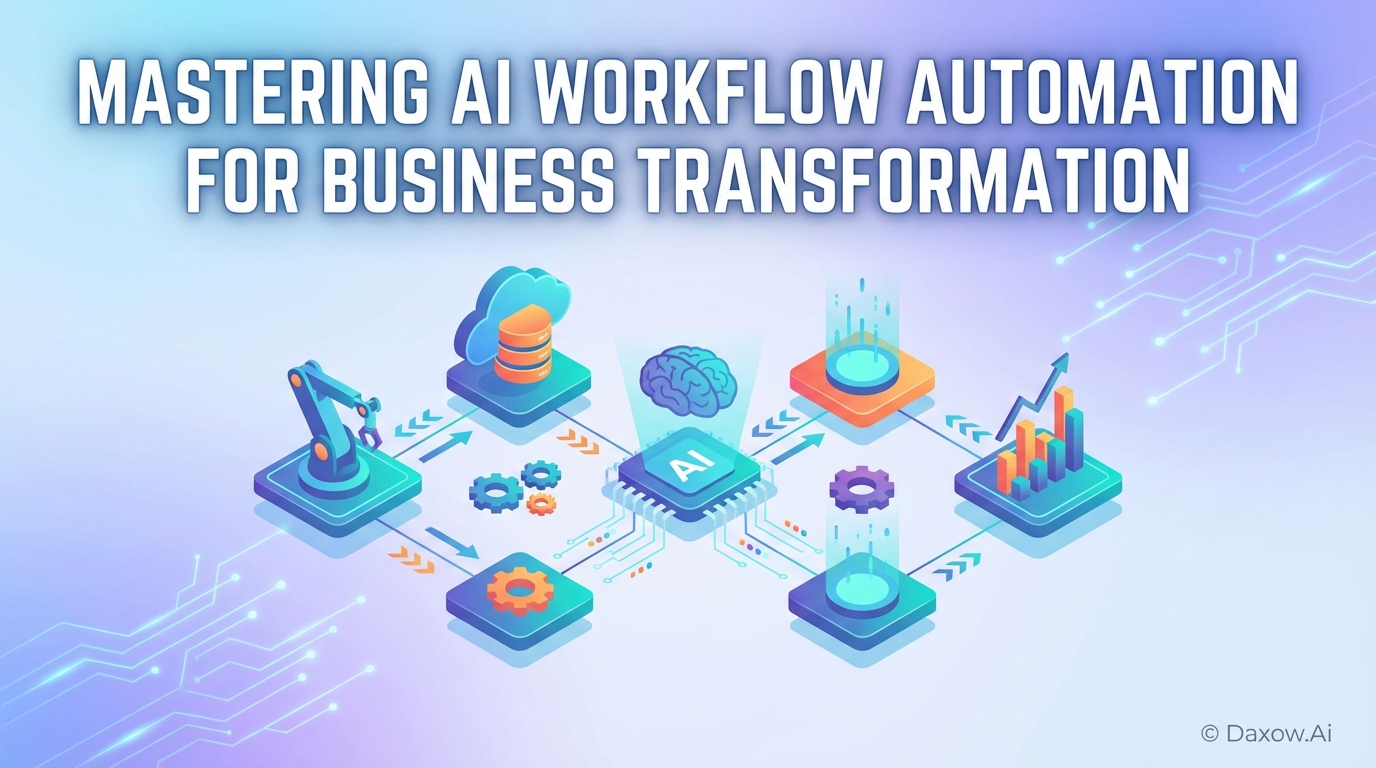 Practical roadmap to design, deploy, and scale AI workflow automation with use cases, implementation steps, ROI metrics, governance, and Daxow.ai services.