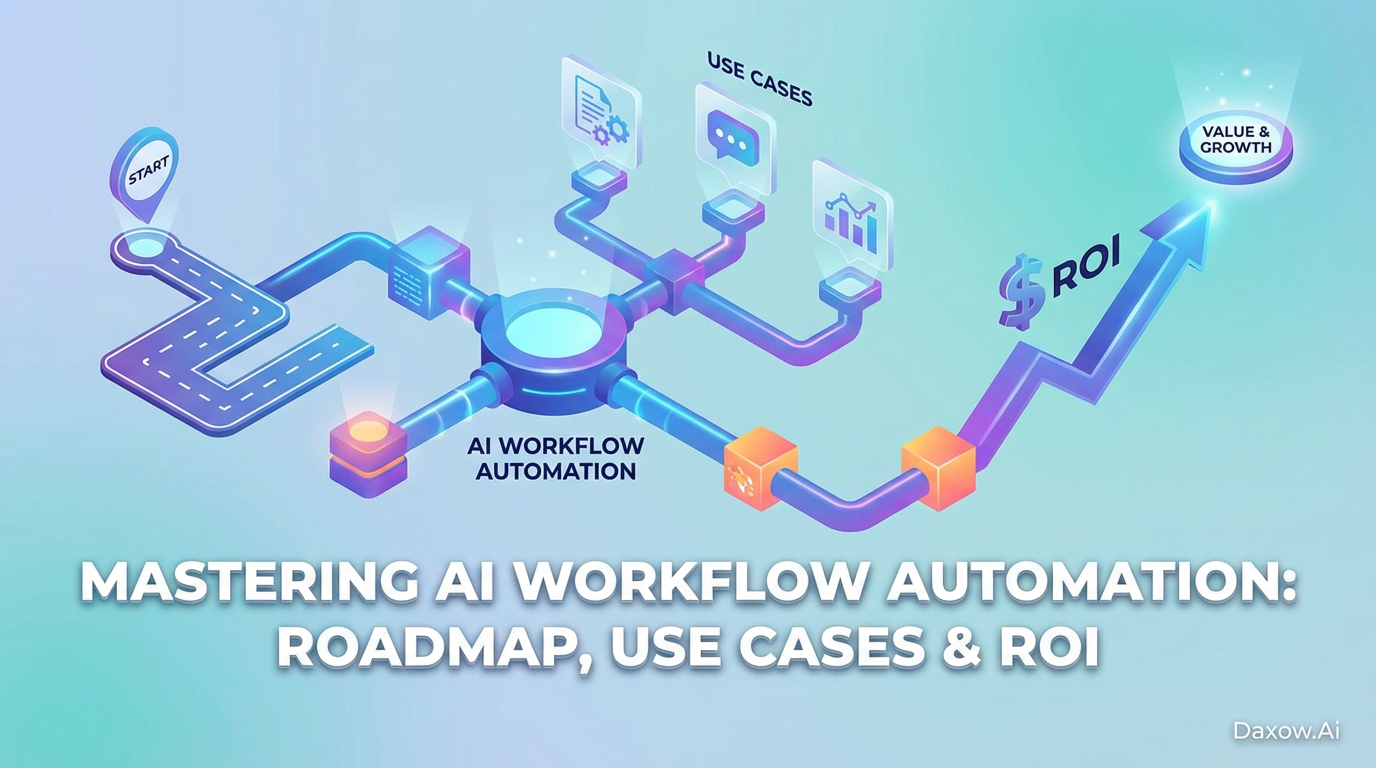 A pragmatic guide to AI workflow automation: phased roadmap, cross-industry use cases, governance, and how Daxow.ai builds AI agents to cut costs and boost ROI.