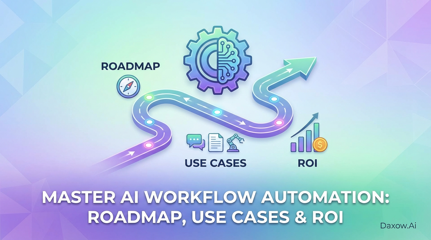 Practical guide to AI workflow automation: roadmap, KPIs, industry use cases, and ROI. See how Daxow.ai builds AI agents to cut costs and boost productivity.