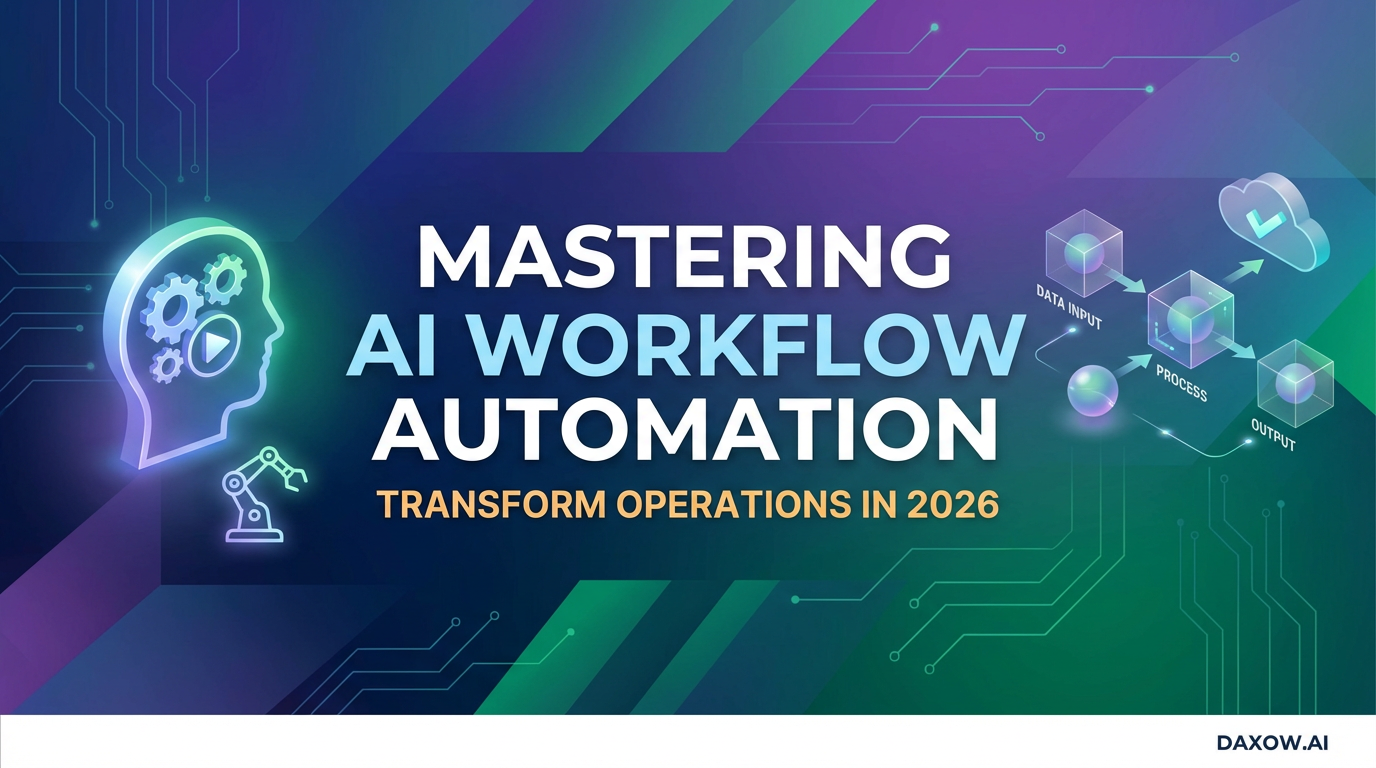 Actionable 2026 guide to AI workflow automation, use cases, KPIs, roadmap, and how Daxow.ai builds AI agents to cut costs and scale operations.